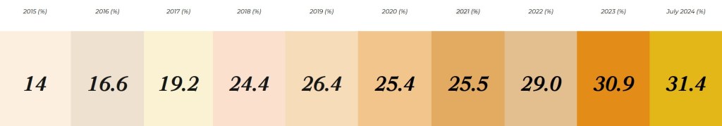 Women representation on the top 100 public listed boards from 2015 onwards. Source: Securities Commission